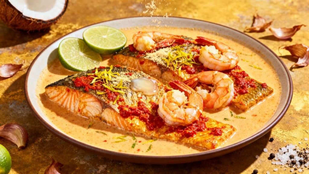 Pour intensifier les saveurs, laissez mariner le cabillaud et les crevettes dans le jus de citron vert avec une pincée de sel avant la cuisson.